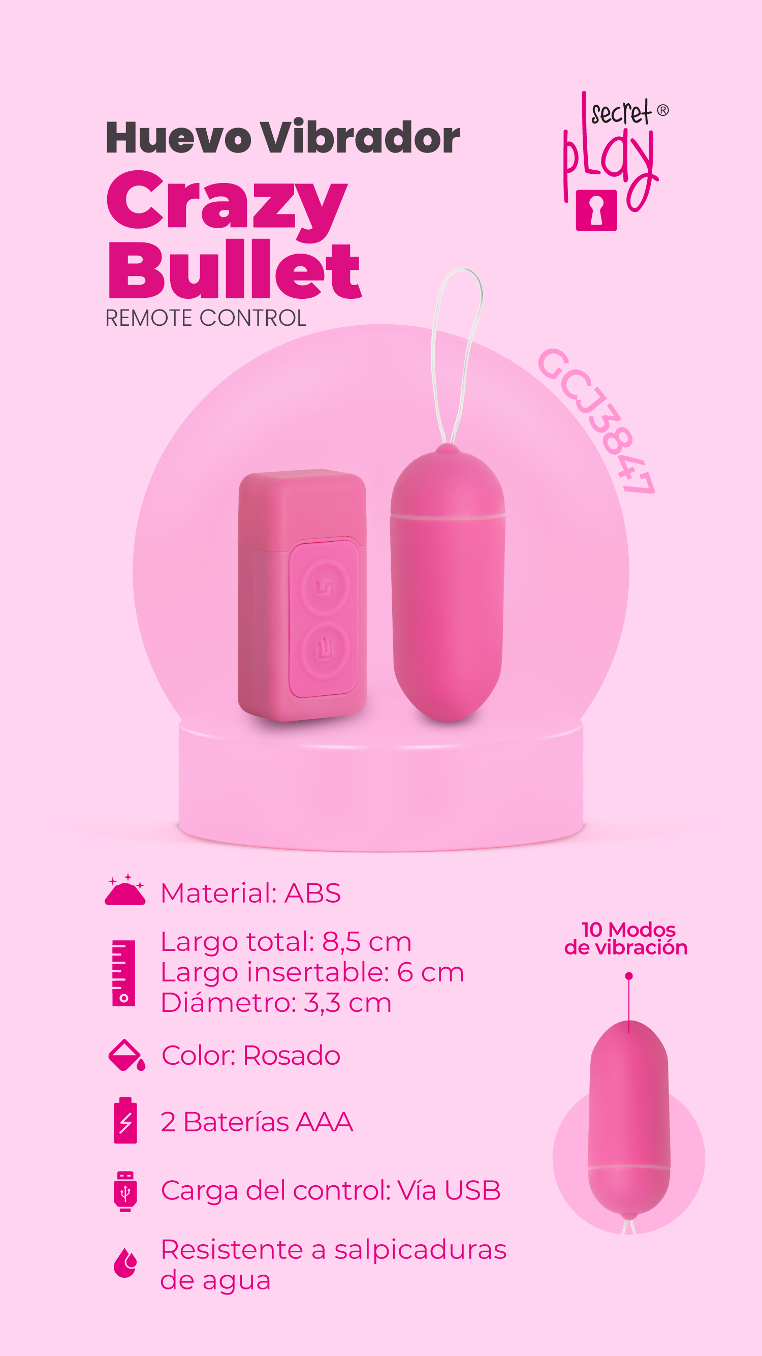 Aumenta el placer en tu intimidad con este práctico huevito, cuenta con 10 modos de vibración que podrás graduar como más te guste.